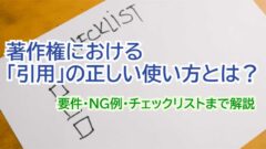 X Facebook はてブ LINE 2024.06.172024.06.24 新着記事 著作権における「引用」の正しい使い方 要件・NG例・チェックリストまで解説 2025.10.02 著作権はいつまで守られる?死後70年と例外・海外ルール 2025.09.29 著作権侵害とは?事例から学ぶ違法・合法の境界線【初心者向け解説】 2025.07.222025.07.25 【完全解説】著作物とは?著作権で保護される対象の定義・具体例・判断基準 2025.07.152025.07.25 新着記事をもっと見る 人気記事 著作権とは?基本概念と種類をわかりやすく解説します 2024.05.102025.07.25 【完全解説】著作物とは?著作権で保護される対象の定義・具体例・判断基準 2025.07.152025.07.25 著作財産権とは?基本から権利内容、使い方までやさしく解説 2024.06.172025.07.25 【心を護る著作権】「著作人格権」を徹底解説!あなたの作品、勝手に変えられていませんか? 2024.06.172025.07.25 人気記事をもっと見る